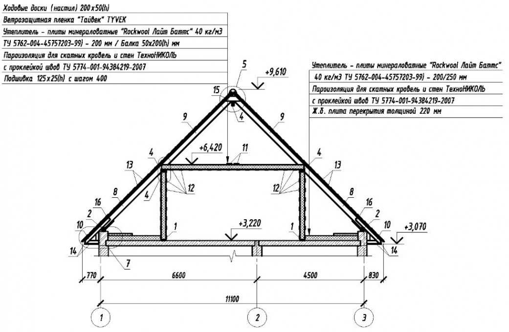 При этом принимается во внимание метод фиксации элементов к мауэрлату. Если делается врубка, то ширина досок должна увеличиваться на величину врубки
