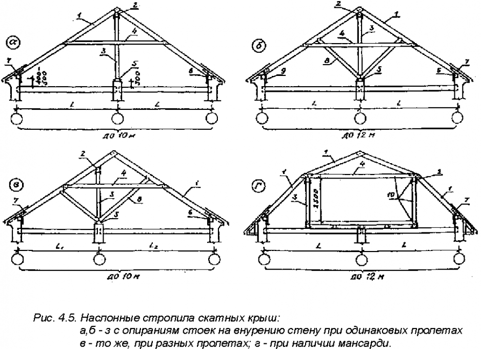 Дело в том, что пропил в этом месте автоматически уменьшает ширину материала, воспринимающего нагрузки. Если на доске толщиной 200 мм сделать поперечный пропил длиной 60 мм, то в расчет принимается только оставшаяся ширина 140 мм. Соответственно, если при расчете нагрузок выбраны стропила из досок 200 мм, но во время крепления делаются непредусмотренные пропилы 60 мм, то ширина заготовок для стропилин увеличивается до 260 мм. Это замечание делается для тех, кто любит злоупотреблять различными зарубками и пропилами для упорных площадок концов стропилин. В настоящее время есть много специальных приспособлений, позволяющих прочно зафиксировать стропилину в нужном положении без запиливания.