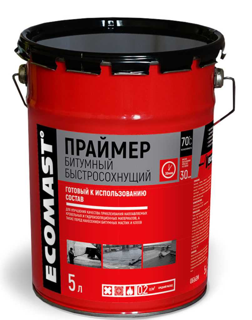 Эмульсионный битумный праймер -это нефтяной битум на водной основе с добавлением модифицированных присадок и не содержащий растворителей, поэтому не горюч. Эта пропитка используется как гидроизоляция и грунтовка внутри помещений. Гарантирует прочное сцепление гидроизоляционного покрытия с основанием. Температура его применения ограничивается диапазоном от +5°С до +30°С. Битумно- полимерный праймер — раствор нефтяного битума с добавлением полимеров и адгезионных присадок в растворителях. Обладает повышенными адгезивными и гидрофобными свойствами. Состав предназначен для огрунтовки мостовых сооружений, металлических прогонов или плит проезжей части. В частном домостроении применяется для изоляции металлических, бетонных или деревянных поверхностей. Пропитка отлично работает как при положительных, так и при отрицательных температурах и может применяться внутри и снаружи здания. Из всех видов праймеров полимерный -самый быстросохнущий, время высыхания — менее часа.