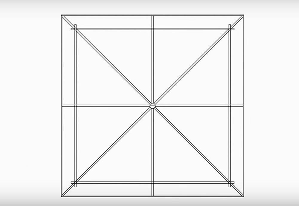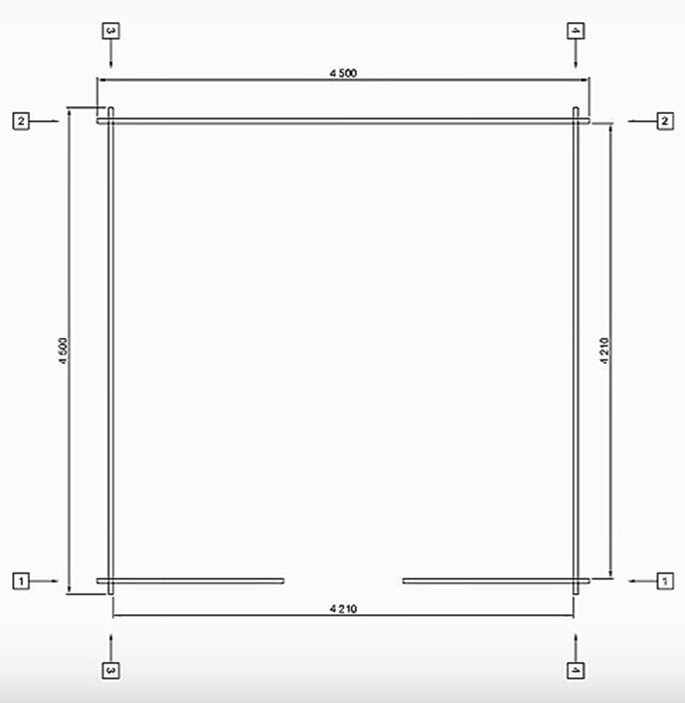 Видно, что это беседка 4 на 4 метра, на чертеже чуть больше, но это не суть важно – любые размеры можно пропорционально изменить. Так же становится ясно, что беседка планируется квадратная, без сомнения – это плюс, так как подобную разметку фундамента сделать намного проще