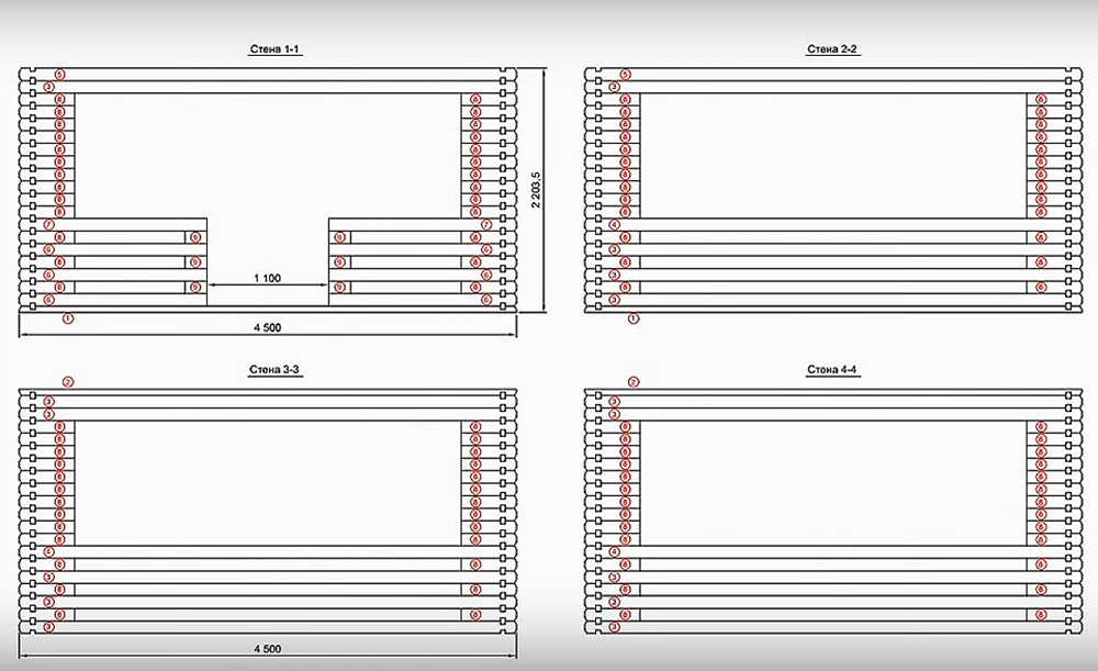 Примечательно, что все элементы конструктивно одинаковы, различаются они в основном только длиной, в них для стыковки углов выполнены зарубы – условно назовём их чашами.