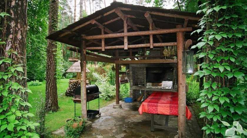 - Конструкции для отдыха. В большинстве случаев для их изготовления используется древесина, так как особая прочность не является критической в этой ситуации. Односкатные деревянные навесы для отдыха могут быть открытыми и закрытыми, их главная цель — укрыть от дождя и ярких солнечных лучей.