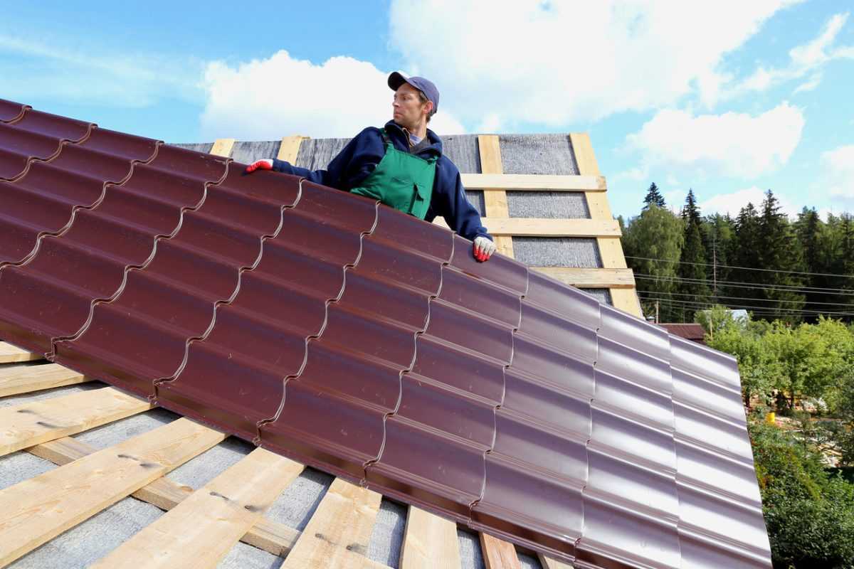 Для работ с металлочерепицей нужно как минимум 2 человека. Ее подъем на кровлю выполняется по предварительно подготовленным деревянным опорам, чтобы минимизировать вероятность деформации и повреждения листов. Наиболее легкий процесс монтажа листового материала наблюдается на простых скатных крышах, поскольку разнообразные изломы и скосы усложняют укладку из-за необходимости подрезки изделий.