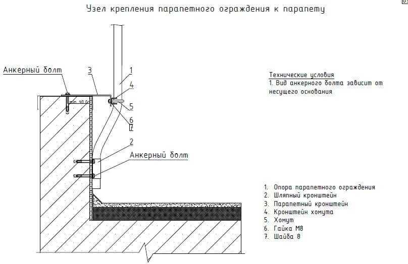 Устройство парапетов подчиняется своду правил, где в зависимости от конструктивных и эксплуатационных условий есть следующие требования: