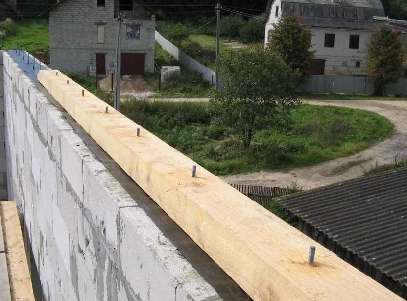 Далее крепят прогон – балку, которую укладывают вдоль мауэрлата – она будет выполнять роль страховки для него.