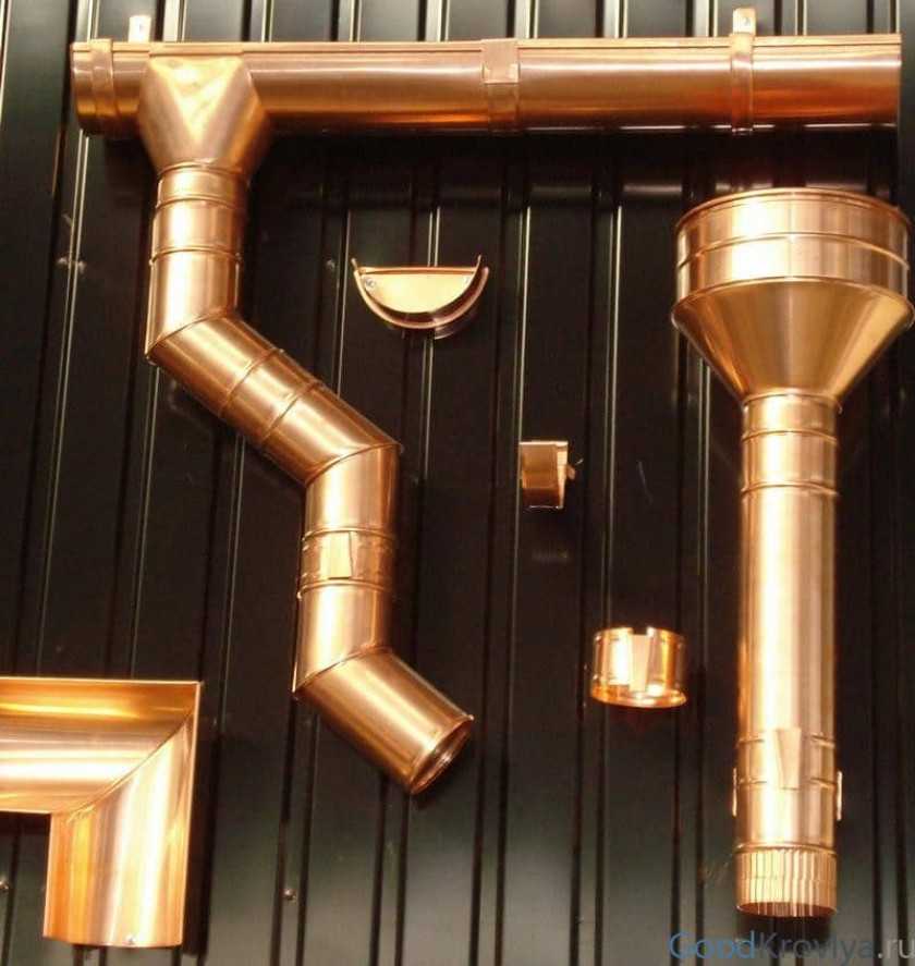 Конструкции, сделанные из медных листов, имеют весьма солидный и декоративный вид, но применяются не так часто ввиду их значительной стоимости.