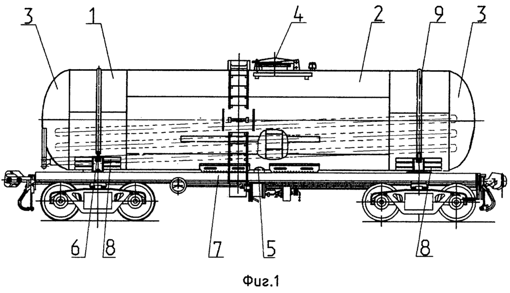 В верхней части цистерны установлен заливной люк с фильтром 4, внутри цистерны установлены перегородки, для предотвращения гидравлического удара при резких торможениях тягача.