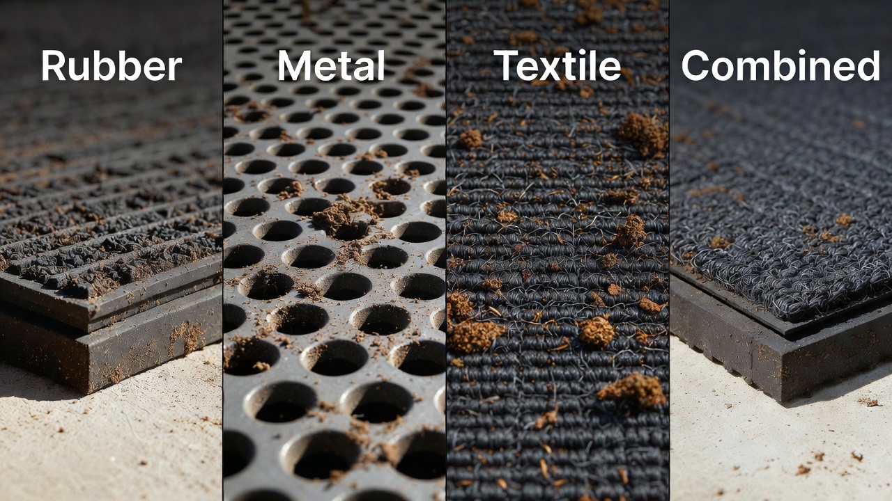 Существует четыре основных типа материалов для грязезащитных дорожек: резина, металл, текстиль и комбинированные решения. Каждый из них обладает уникальными характеристиками и подходит для определённых условий эксплуатации.