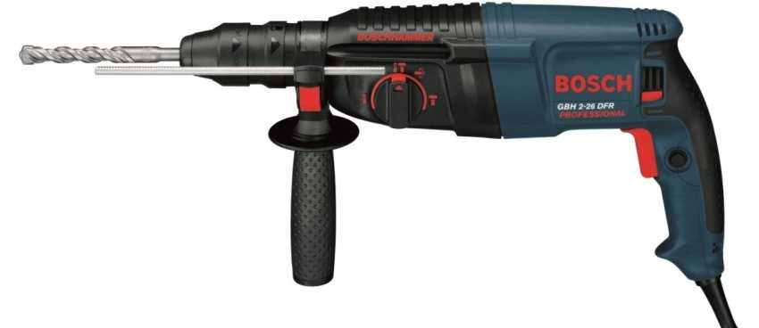 Этот инструмент можно вполне отнести к профессиональным, однако он отлично подходит и для домашнего использования. Конструкция отличается стандартным набором компонентов, куда входит основная система безопасности, несколько патронов, фиксаторы и разного рода ограничители. Пользователи отмечают удобство рукоятки, которая будет идеально ложиться в руку. В конструкции имеется специальный предохранительный винт, который обеспечивает процесс сверления с заданными параметрами вне зависимости от того, насколько контролирует инструмент пользователь. Патрон SDS Plus позволяет производить замену оснастки достаточно быстро, не отвлекаясь от работы.